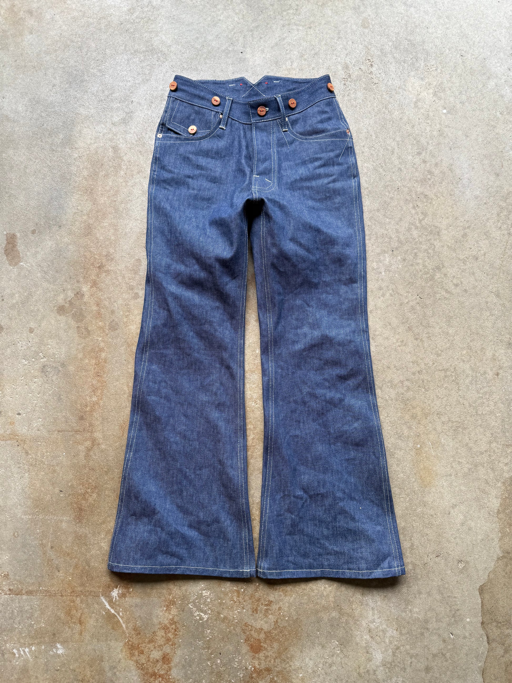 Constructed of 16oz selvedge denim from cone mills. Finished with apple tree wooden buttons and copper rivets.