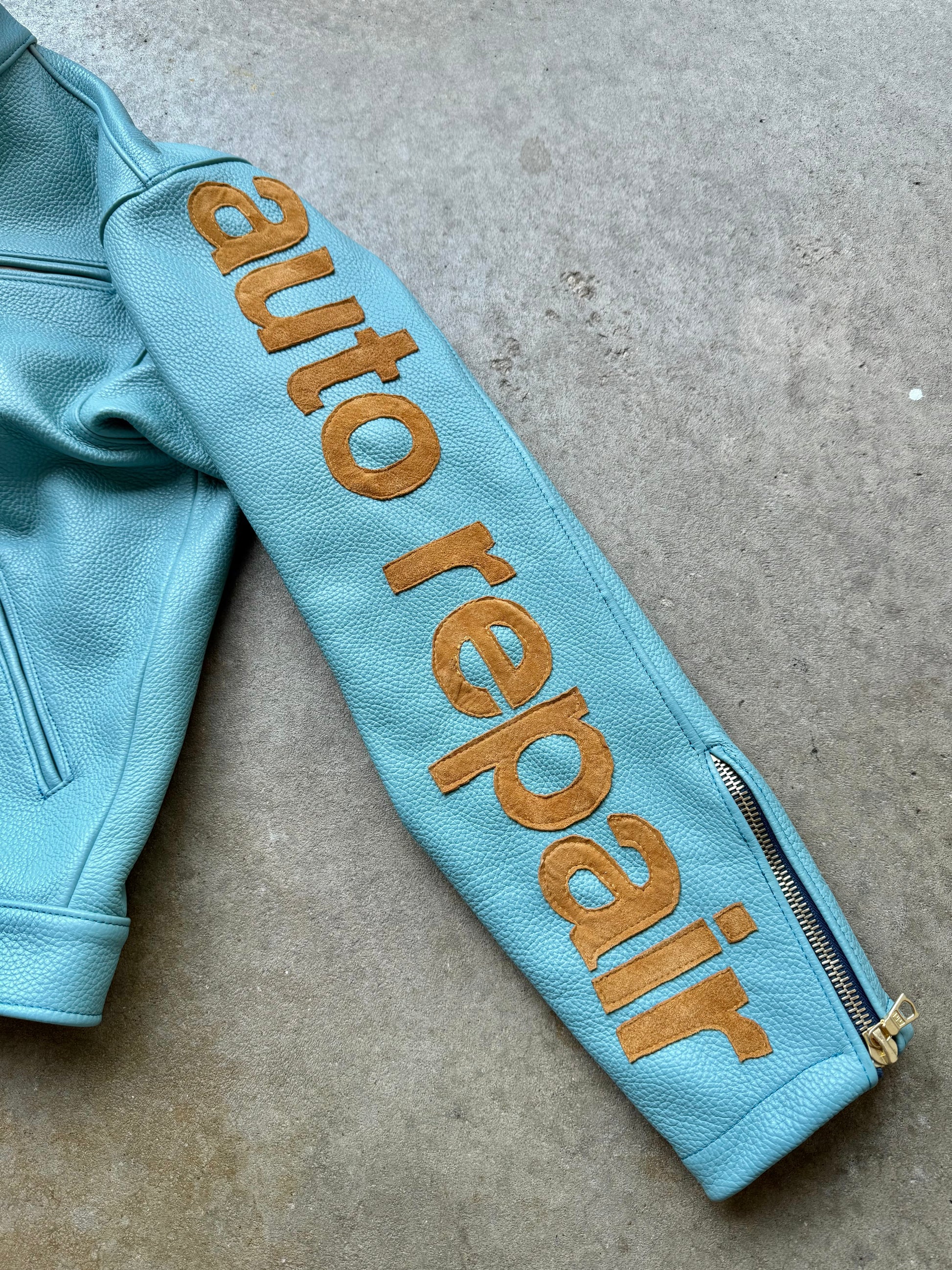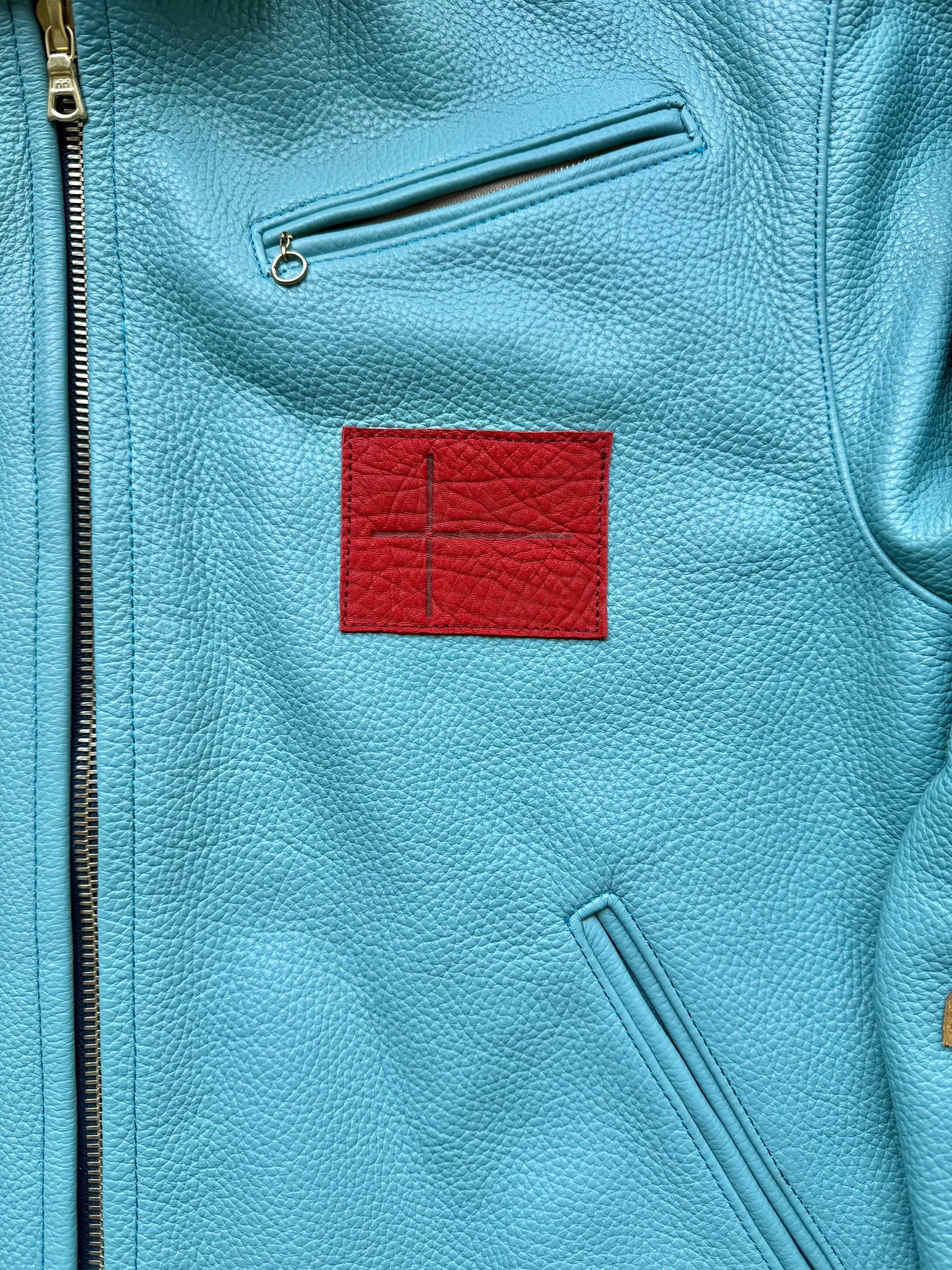 Constructed of cowhide, pig suede, real silk, and a horse shoulder patch. Finished with 3 brass riri zippers, 2 vintage talon zippers, and brass snap closures.